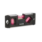 磁石付携帯型アルミ製水平器 ■パイプにしっかり固定できるV 字溝測定面 ■本体上下の測定面でのマルチ測定が可能 ■衝撃吸収バンパーを両端面に搭載 ■左右に2 種類の通し孔付 |