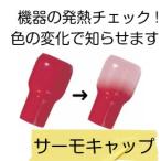 サーモキャップ MTC-4 適用電線:3.5mm2〜5.5mm2 発熱を色の変化で知らせる商品です。 この商品を付けておく事により、どこが発熱しているか一目で分かります。 監視部分が発熱すると、色が変色し半透明に近くなります。 ※室内およびボックス内専用です。 直射日光、紫外線の当たらない場所でご使用下さい。 カラー:青・赤・黄・黒 在庫が不安定な商品ですので、ご注文の際は希望納期を備考欄に入力下さい。