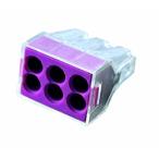 ワゴジャパン WGXシリーズ WGX-6 (1箱50個入) 差込本数:6本 色:パープル 適応電線:銅単線φ1.6 φ2.0 (通信線等のφ1.2mmにも使用できます) 定格:20A 300V |