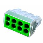ワゴジャパン WGXシリーズ WGX-8 (1箱50個入) 差込本数:8本 色:グリーン 適応電線:銅単線φ1.6 φ2.0 (通信線等のφ1.2mmにも使用できます) 定格:20A 300V |