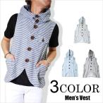 綿麻ボーダーパーカーベスト/メンズ/アウター/フード/ジレ/羽織り/お兄系/ネイビー/ホワイト/ライトブルー/青/紺/白/bitter/ビター/ベスト/綿麻/春/秋/マリン/リゾート/カジュアル/セレカジ/ |