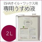 地球のめぐみから生まれた木部用自然塗料エシャ 対象:無垢木材全般、無垢材製品 専用うすめ液 ESHAオイル類、ワックス類用のうすめ液です ■塗装面の汚れの拭き取りや、塗装用具の洗浄、衣服についた乾燥前の塗料を取る時にも使えます。 ■安全性の高い溶剤(イソパラフィン)から作られています。 ■イソパラフィン 〇クリアオイル、カラーオイル、クリアオイルラピッド、ワックスオイルの粘土が高く塗りにくい時にお使いください。 一度に加えず、塗料を混ぜながら徐々に加えてください。 〇刷毛の洗浄は、まず刷毛についた塗料をヘラなどでしごき落とし、余分な塗料を取り除いた後に、少量のうすめ液で何度かに分けて洗ってください。 ※使用後、手が荒れた時は、ハンドクリームなどでお手入れしてください。 ※作業中は換気をよくし、溶剤蒸気を吸入しないよう、目に入らないよう、また誤飲しないよう注意してください。 ※火気の近くでの使用や保存はしないでください。 ※塗装や拭き取りの際には、目立たないところで試してからお使いください。 水性ワックスには使用できません。