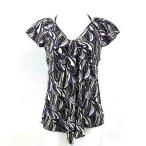 黒、パープル、白、グレーの幾何学柄が目を惹くトップスです♪ 胸元からフロントが開いたカシュクールデザインと、とろみのあるお素材でエレガントな雰囲気を演出☆ 胸元センターに施されたタイ風の切替と胸下のギャザーを寄せた切替ライン がすっきりとしたシルエットを作り出してくれます。 フロントネックラインの肩よりの部分にリボンの紐通しが付いています。 前身ごろが開いたデザインですので、インナーの着用をおすすめします。 裄丈約30cmバスト約74cm着丈(肩辺りから)約56cm :(1) :(ポリエステル100%) :(黒×紫) :(A) 12130313-008 463 011 |