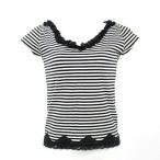 定番モノトーンボーダーで着まわし力抜群☆ フレンチスリーブですっきりとしたシルエット。 柔らかなコットンストレッチは着心地も文句なしです。 なだらかなVネックと裾にあしらわれたレースがとってもフェミニン! 重ね着コーデも綺麗に決まりますよ。 若干の毛羽立ちと、アームホールにうす汚れがみられます。 着丈約49cm袖丈約9cm肩幅約34cmバスト約80cm :(2) :(綿 95% ポリウレタン 5%(レース ナイロン 85% ポリウレタン 15%)) :(黒白) :(BC) 20131220-015 424 011 |