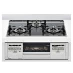 [仕様] ・品名:両面焼グリル付3口ガスビルトインコンロ ・型式:RX31W21A18RW ・質量:約19.0kg(付属品含む) ・外形寸法:約高さ269mm ×幅596mm ×奥行538mm (トッププレート幅590mm) ・ガス接続:15A(1/2B)金属可とう管または金属管 ・電源:DC3.0V(単1形アルカリ乾電池(1.5V)×2個) ・点火方式:連続放電点火式 [安全機能] ・調理油過熱防止装置(天ぷら油過熱防止機能) ・立消え安全装置 ・コンロ消し忘れ消火機能 ・グリル消し忘れ消火機能 ・焦げつき消火機能 ・点火ロック ・中火点火機能 ・グリル過熱防止センサー ・コンロ、グリル操作ボタン戻し忘れお知らせ機能 ・高温自動温度調節機能 ※詳しくはメーカーページにてご確認ください。