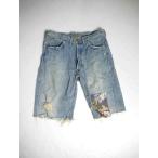 USED品正規品のLee(日本製)の綿100%のUSED加工のデニムのボタンフライのハーフパンツです。 素材タグは日本語表記ですが、日本代理店の記載は、ありませんが、正規品ですので、ご安心ください。 サイズ31×33で、実測でウエスト(履き口の外周)84cm(平置きにした時の左右の間40cm)、股下(縫い目に沿って)29cm、股上27cm、ワタリ30cm、裾幅24cmです。 (若干の誤差はご容赦ください) 状態は、多少の使用感(使用に伴う写真程度の汚れや傷・元々の加工。 等)ありますが、大きなダメージはありませんので、USEDにご理解ある方(神経質な方・完璧を求める方はご遠慮ください)なら、問題ないです。 10段階で7.5〜8です。