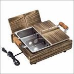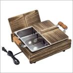 焼杉風木枠で包んだ本格的な雰囲気でおでんを楽しめるおでん鍋。 それだけでなく煮る、茹でる、蒸す、焼く、 炒めると1台5役をこなし、オールシーズン使用できます。 内鍋の深さは10cmとたっぷり入る大きさで、内面はフッ素樹脂加工でお手入れもカンタンです。 仕切り板2枚と、蒸し用目皿がセットです。