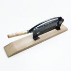 柄の上げ下げにより刃が前後に動きますので、切れ味抜群! 切刃部の自動送りが従来の押切器より長いため、肩がかるく良く切れます。 自動送りのセンターは切刃の根本に取り付けてありますので、絶対に狂いなく、押し切り器の刃は誰にでも簡単に取り外しでき、研いで刃先を前後へ変えることも出来ます。 ・サイズ: 刃渡り:30cm 台:(約)幅66×奥行き12×高さ3cm ・用途:ワラ切り、小枝処理、花のサイズ合わせ等 ・備考:台付き ※ページ内の写真は33cmです。