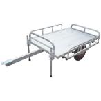 乗用草刈機にトレーラーをつければ、収穫物の運搬はもちろん、 肥料や選定後の枝の運搬等1台2役です。 乗用草刈機の筆致とトレーラーをつなぐ金具は付属されません。 注意事項をご確認の上お客様で手配をお願いします。 型式:MT-1208エアータイヤ(13-3T) 最大積載重量:約150kg 重量:約23.5kg ※詳細サイズ画像に記載ありますのでご確認下さい。 ※画像にあるように草園での使用を前提としたトレーラーです。 傾斜地や荒れた道でのご使用はお控えください。