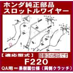 ホンダ純正 耕うん機 F220J,F220BA用のスロットルワイヤーです。 商品画像は見本です。 機種・ワイヤーの種類によって形状等異なります。 素材違い(鉄、樹脂)の部品がある場合がございます。 ご注意下さい。 同じ機種でも製造時期によって部品が異なる場合があります。 不明な点がございましたら、機種番号(製造番号)をご確認の上、お問い合わせ下さい。