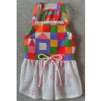<薄地・綿>背側は布地になります。 赤のチェック柄(リップル)にスカートは地色が黄の花柄。 紺のひもリボン付きです。 胸側は赤と白のボーダー柄ニット。 縁取り(袖口〜ひも部分)赤のニットテープ。 胸側の裾は赤のリブです。 出来上がりサイズ(1cm前後の誤差はご了承ください)」 XS:首回りフリー(15〜19cm) 胴回り26cm丈23cm SS:首回りフリー(17〜22cm) 胴回り31cm丈23cm S:首回りフリー(20〜26cm) 胴回り36cm丈26cm SD:首回りフリー(20〜26cm) 胴回り36cm丈28cm M:首回りフリー(24〜30cm) 胴回り42cm丈28cm L:首回りフリー(27〜33cm) 胴回り47cm丈30cm (丈は胸元〜裾まで・ひもは含みません) ※現品限り追加なし商品 |