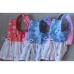 <綿>背側・色違い2種赤系青系 背側とリボンはパッチワーク風柄の布地 胸側は伸縮性の有るニット、針抜き地模様に小花柄プリント。 リボンは涼しげに白のメッシュ生地。 胸元とスカートの裾は小さなニットレースで仕上げました。 縁取り(袖口〜ひも部分)見頃と同じパッチワーク風を使用。 胸側の裾は薄いピンク色の平リブ 出来上がりサイズ(1cm前後の誤差はご了承ください) SS:首回りフリー(17〜22cm)胴回り31cm丈23cm S:首回りフリー(20〜26cm)胴回り36cm丈26cm M:首回りフリー(24〜30cm)胴回り42cm丈28cm L:首回りフリー(27〜33cm)胴回り47cm丈30cm (丈は胸元〜裾まで・ひもは含みません) ※商品により柄の入り方が異なります。 |