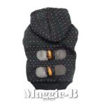 小型犬の洋服、ダッフルコート風の可愛いフード付きセーターです。 裏起毛で暖かく、伸縮性があります。 裏地はお洒落なマルチカラーのボーダー柄です。