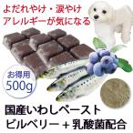 当店の長年の経験や実績を踏まえて、一押しできる商品です。 ドライフードや手作り食のトッピングとしてお使い頂きますよう、お願い致します。 当店オーナーのDOGニュートリスト古川が、愛犬ウェスティのアレルギー体質,脂漏症対策に、欠かせない食材であるイワシ。 カルシウムやDHA・EPA・葉酸などいわしには、たくさんの栄養があります。 それにビルベリーと乳酸菌をプラスすることで、 より多くの栄養を摂っていただけるアイテムに仕上がりました。 私たちは『自然な素材から作られた食事で免疫力の高い 健康な身体を作る』という考え方で商品開発をしています。 加齢とともに気になる目の健康や免疫力UP、腸内環境の改善におススメ。 より健康な身体を目指すための一歩として 是非こちらのアイテムをお試しくださいませ。 ■商品カロリー ■ 500g入り(250gx2ピース入り)250gあたり482.2kcal 1片あたり約81kcal ■原産国 ■ 日本 ■保存方法 ■ 要冷凍保存必要分のみ解凍して下さい。 ■賞味期限 ■ 製造日より、冷凍状態にて6カ月間。 解凍後は冷蔵保存し2日以内にはお召し上がり下さい。