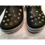 秋冬に最適穴埋めスタッズ加工アップグレード こちらは当店でカスタムクロックスをご購入いただく際に同時にカートボックスに入れてご購入いただく場合のみ、購入可能なカスタムのアップグレードです。 ※同時購入で購入頂くベースのカスタムクロックスがシルバーの場合にはシルバーで、ベースのカスタムクロックスがゴールドの場合にはゴールドでの施工となります。 クラシックと組み合わせでさらにパンク度をUP! クロックバンドとの組み合わせでは、見かけが格好良くなるだけでなく、密閉状態になるので寒い時期でも快適にクロックスを履いていただけます。 掲載写真はカスタム実施後のカスタム施工サンプルで、現品をお渡しするものではございません。 代金は、追加金具代金及びカスタム工賃です。 こちらの同時購入で通常のパンクカスタムの各リングにスタッズを取り付けし、穴埋めを行った上で発送させて頂きます。