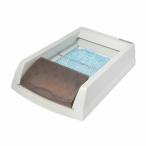 自動でおそうじをしてくれるネコちゃん用のトイレです。 使い捨てのねこ砂トレーセットなので、うんちやおしっこに触れずに処理できます。 本体はビニールコーティングで、トレーからおしっこの漏れを防ぎ、ほこりが舞わないのでトイレはいつも清潔です。 (1)最長30日間取り替え不要!手間いらず。 (2)ネコちゃんのトイレの使用回数がわかるヘルスカウンター付き。 (3)専用フード(カバー)付き。 (4)お掃除の開始時間が設定可能。 ネコちゃんがトイレに入るとセンサーが感知します。 ネコちゃんがトイレを出るとタイマーがスタートし、設定時間経過後におそうじが始まります。 途中でネコちゃんがトイレに戻ってくると、タイマーが止まり、ネコちゃんがトイレを出るとタイマーがリセットされた後再びスタートします。 20分・10分・5分のいずれかの設定時間が過ぎると、電動クシがうんちを自動でうんちボックスに集めるので、トイレはいつも清潔です。 電動クシは元の位置に戻りながらシリカゲルねこ砂の表面を平らに整えます。