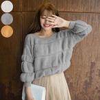 もこもこ感が可愛いデザインニット☆ 無地だからボトムスを選ばない万能アイテム☆ ショート丈でトレンドのハイウエスト丈のボトムスとの相性抜群☆ カラー グレーカーキホワイト サイズ 着丈47肩幅47袖丈43バスト120裾幅29 裏地なし 伸縮性あり 透けあり |
