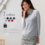 半袖ニット/カラーニット/きれいめスタイルに近づく清楚なシフォン衿付き半袖ニット。 丸くカットしたホワイトのシフォン衿付きで可憐な印象。 煌めくビジューが華やか。 バックに同系色の丸ボタン付きで着脱も楽々。 レーヨン混のしなやかな肌触り。 ほどよい光沢感があります。 上品な印象のハイゲージニット。 洗いOK。 Size M 着丈:約52.5cm 肩幅:約30cm バスト:約79.5cm ウエスト:約79cm 袖丈:約17cm 袖幅:約13cm ※モデル(参考):H161B82 W58 H83F22.5 着用サイズ:M 着用カラー:イエロー、ネイビー 素材 本体:レーヨン65%、ナイロン35% 別布部分:ポリエステル100% 伸縮性 両方 透け感 薄色はあり 裏地 なし 生産国 made in china ■カラーバリエーション 1:ネイビー 2:ピンク 3:イエロー 4:ミント 5:ブルー ※環境により色合いが異なる場合がございます。 ※サイズは、実寸サイズを測っているため多少誤差がでる場合があります。