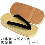 お気軽に雪駄感覚を楽しめる軽装雪駄です。 本物の雪駄は表が竹皮の畳表、裏が牛革底ですが、こちらの軽装雪駄は表が井草の畳表、裏がスポンジ底になっています。 ビニールではなく井草の畳表なので、足当たりが気持ち良いのが特徴です。 スポンジ芯のスポンジ底なので安定感のあるクッションの効いた履き心地になっています。 花緒は起毛素材の化学繊維「ハイミロン」を使用したシンプルな黒無地がすがっています。 素足でも足袋でも、御普段着に合わせてお履き下さい。