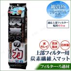 ■物理ろ過 飼育水のゴミや残り餌、魚のフンを荒目マットで取り除く物理ろ過(荒目マットは別売) ■生物ろ過 生きたバクテリアで残りの餌や魚のフンによって発生するアンモニア、亜硝酸を分解する生物ろ過 ■吸着ろ過 高性能活性炭で、飼育水のニゴリ、黄ばみ、悪臭を吸着ろ過。 ■適合機種 ■ コトブキプロフィットフィルターX3 コトブキプロフィットフィルターF3 コトブキプロフィットフィルター コトブキパワーボックスSVミニ コトブキDATA(データ) コトブキDATA2(データ2) ■取り付け片(使用方法) ■ 1.活性炭マットを袋から取り出し水道水で軽くすすぎます。 2.活性炭マットをセットします。 ■交換時期 ■ 活性炭マットは、長期間使用しますと活性炭効果が弱くなります。 2〜3週間に一度は交換するようにして下さい。 ■ご注意 ■ この商品は適合機種の交換ろ材です。 単品でのご使用はできません。 取り付け片については適合機種の取扱説明書もご覧ください。