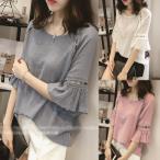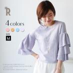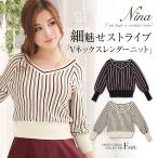 着丈48バスト80袖丈42 単位:cm 1?3cm誤差あります レッドブラック 7分袖 ニット フレア袖 ニットトップス ボーダー柄 Uネック クールネック ニットソー ニット トップス カットソー レディース |