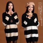 詳細 ふんわりとした柔らか素材のニット☆<br>ドルマンスリーブのゆるニットだから体型カバーにばっちり☆<br>普通のボーダーではなくレースのようなデザインボーダーで注目度も....... |