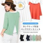 バックスリットを施し、360度完成されたスタイルが叶うニットプルオーバーが登場 後ろ中心にデザインポイントを置いて大人の遊び心をプラス!タンクトップ付きの 2セットアイテムだから、これだけでサマになるレイヤードスタイルが完成します♪ ■サイズ ※サイズ画像をご確認ください。 ■素材 ポリエステル80%、レーヨン20% 薄めの色は透け感があります/伸縮性若干あり 肌触りの柔らかい薄手のサマーニット素材です。 ※染料の特性上、カラーによって若干サイズが異なります。 布帛生地 伸縮性なし/透け感あり 肌触りの柔らかい、サラリとした生地感です。