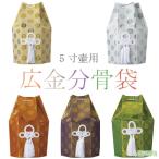 分骨用の分骨袋(骨カバー)です。 素材に厚みがありしっかりとした作りになっています。 正面には房が付いています。 色の種類は金,銀の2色ご用意しております。 分骨袋の大きさは2寸用(2.3寸使用可)をご用意致しております。 ※ すべて手造り商品のために、それぞれの色、柄、形状等が写真とは異なる場合がございます。