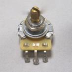 定番の米国CTS社製のボリュームポット インチサイズ ネジ部は直径約9.4mm、ノブ取り付け部先端は直径6ミリ、24山刻みのスプリット・シャフト ボトムは凹みの有るヴィンテージスタイル Cカーブ(左利き用)、250KΩ |
