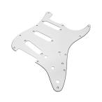 62年式11穴タイプ、ホワイト3PLY、インチ規格品 Fender USA互換品 現行USA 60's Pickguardsを元に製作された商品となります。 裏面はアルミテープでシールド処理してあります。 主な適合モデル 現行Fender USAおよびMexico製ST60'sタイプなど 62モデルと72モデルの違いは比較画像をご参照ください。 赤丸部分のねじ穴位置以外は62,72ともに共通仕様となります。 サイズ、ねじ穴位置ともに上記モデルに準じております。 (ご注意) ■年代や個体差に起因するズレが生じる場合もございます。 ■Fender Japanや他メーカーのモデルへはネジ穴位置に大きなズレが生じる場合がございます。 ■トップ面はキズ防止用保護フィルムが貼ってありますが、裏面はキズ防止用保護フィルムがない為、製造輸送過程に伴うスリ傷やシミがあることがございます。