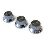 インチミリ兼用のストラト用コントロールノブ3個セット クローム、VOLUME×1、TONE×2、レバースイッチノブ×1 |