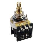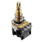 CTS社製のスプリットシャフト・スイッチポット Aカーブ、250K プッシュ/プルタイプ DPDT(2極双投) インチサイズ ネジ切り部の径: 3/8" (約9.5mm) 本体部: 1" (約25.4mm) ナット、ワッシャー、スターワッシャー付属 |