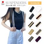 X型サスペンダー30mm幅です。 定番商品として需要があります。 裏地つきのゴムは前5カラー。 2本のベルト生地を金具を使って背中で交差させており、前後各2ヶ所合計4ヶ所にクリップがついています。 このサスペンダーには、国内NO1メーカーの宮田金属製クロームメッキの金具を使用してます。 通常のクリップと比べ開閉がしやすく、しっかりとパンツをとめることができます。 また、クロームのメッキのしかたも通常より一手間かけた吊り下げ式のメッキをおこなっておりますので、美しい仕上がりとなっております。 サスペンダーの生地は、マンボゴムという裏地が白色の固めの生地を使っています。 30年以上に渡って愛され続けるロングセラー商品です。 幅30mm 最大全長105cm(全長をサイズ調整金具で調整できます) 材質本体[レーヨン・ゴム] 金具[スチール:クロームメッキ] X型(サスペンダーの金具は4つです) サスペンダーはパンツのシルエットを美しく保ち美脚効果あるといわれております。