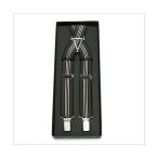 スーツにはもちろん、カジュアルスタイルにもお勧めのサスペンダー。 正統派Y字クリップ式で、背中の革パーツがデキる男を演出します。 スラックスのラインが美しくなり、脚が長く見える効果も。 無地ブラック、ストライプ、アーガイル柄の3色組でお買い得です。 |
