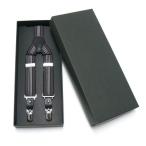 フォーマル用に最適な黒い織りゴムのサスペンダー 生地を傷めない品質の良い国産クリップ使用。 ギフト対応しております。
