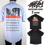 ■ブランド:EYEDY アイディー ■カラー:BLUE、BLACK ■素材:ポリエステル65%、コットン35% ■生産国:メキシコ、ホンジュラス、ハイチ*生産ロットにより変わります。 プリント加工:日本 ■サイズ :cm M〜XXL M / 着丈:79 身幅:52 袖丈:26 肩幅:38.5 L / 着丈:80 身幅:57.5 袖丈:26 肩幅:42 XL / 着丈:81 身幅:62 袖丈:27 肩幅:45 XXL / 着丈:83 身幅:67.5 袖丈:28 肩幅:49 ※実寸表記ですが若干誤差が生じる場合がございます。 ■商品説明 耐久性のある生地を使用した、ボディとしても定番となっている、REDKAPのワークシャツを使用。 両胸には6角形ポケットが付き、左胸ポケットにはペンをまっすぐ挿すためのかんぬき止め仕様。 バックにはオランダ、アムステルダムにありそうな架空のCOFFEE SHOPをイメージしたプリントが入ります。