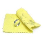宝石店やアクセサリーショップで愛用されるシルバー磨きクロスです。 汚れが落ちたのを確認しやすいイエローカラーになります。 ジュエリーなど銀製品の黒ずんだ汚れを写真のようにサッと拭き取ってくれます。 コンパクトサイズなのでお出かけの際にバッグに忍ばせると重宝します。 ■サイズ::縦12.5cm 横7.5cm ■カラー:イエロー ■セット内容:5枚セット 写真のリングは付属しておりません。