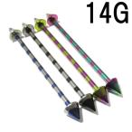 軟骨と軟骨を1本のバーベルピアスで繋ぐインダストリアル用バーベル。 また全体的にPVDコーティングで綺麗な仕上がりです。 発色もよく、ポップでパンクなインダストリアルにしてコーディネートして下さい。 ■次世代コーティングのPVD(Physical Vaper Deposition:物理的蒸着法)コーティングについて。 主な特徴として、「高硬度にて被膜を生成」と「高度の密着力」があります。 被コーティングが硬度で傷が付きにくく、高密着力で剥がれにくくなっております。 ※上記は特徴であって、「絶対に傷が付かない」という事では御座いませんのでご注意ください。 ■スペック ■ 316LサージカルステンレスにPVDコーティング 14G(1.6mm) 35mm / 5mm ■サイズについて ・平置きにて採寸しております。 ・ボディピアスは特に記載がない場合は全て1ヶ売り(1個売り)となります。 ・写真はできる限り現品を再現するよう心がけておりますが、ご覧になられるPC等のモニター環境により商品のイメージと異なる場合がございます。 ご了承ください。