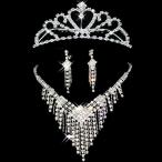 ■納期:ご入金確認後、3-6営業日以内に発送、発送後3-5日前後の到着予定となります。 華やかなフラワーデザインの髪飾り、これを着けて一段と華やかに。 ウェディングの披露宴や二次会ではもちろんの事、 パーティーやイベント等のドレスや衣装にもピッタリです。 今年の誕生日プレゼントやギフトとして、大人気があるヒット商品です。 ■素材:ラインストーン 合金 ■内容:ティアラ+ネックレス+イヤリング/ピアス 3点セット ■カラー:銀色(写真参考) ※お客様ご使用のPC環境により商品画像のカラーが多少異なる場合があります。 仕入時期により多少デザインなど異なる場合があります。 ご了承ください。