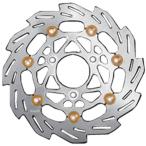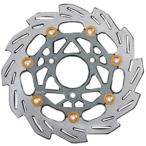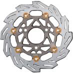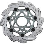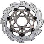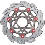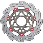 ■マジェスティ(SG20J/4D9)用フロントフローティングブレーキ ディスク ■適合車種:マジェスティ250(SG20J/4D9)ABS車両除く全年式 ■付属品 フローティングディスクローター 専用キャリパーサポート ■箱、説明書、保証書は有りません。 ■ディスク固定面とパッド接地面をピンを使用して分割することで、熱膨張による歪みやホイールへの熱の伝達を最小限に抑えることが可能です。 また、ディスク中央部の素材をアルミ製とすることで軽量化、ドレスアップ効果もあり、直径を拡大することにより制動力の大幅アップも望めます。 形状をウェーブタイプとすることで更なる放熱性も持ち合わせております。 ■お取り付けに際し、フェンダーが干渉しますので若干の加工が必要となります。 ■送料:80サイズ(メール便対応不可)