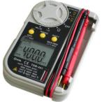 ■作動方式:2重積分方式 ■表示:31/2桁デジタル表示、最大表示「1999」 ■極性表示:自動(−符号のみ点灯) ■オーバーレンジ:1または−1マークが点灯 ■測定機能:直流電圧、交流電圧、直流電圧、抵抗、ダイオード、トランジスタチェック ■電池電圧表示:作動電圧以下のとき、マーク点灯 ■作動温度・湿度:0〜50℃、80%RH以下(結露のないこと) ■保存温度・湿度:−15〜50℃、70%RH以下(結露のないこと) ■電源:アルカリ乾電池(006P 9V)使用時、約200時間 ■消費電力:5mW(TYP) ■寸法:幅70×高さ126×奥行き25mm ■質量:約140g(電池含む) ■付属品: 006P 9V 乾電池1個(動作確認用:内蔵)、ヒューズ1個(250mA/250V:内蔵) テスト棒(赤/黒)1組、保証書付取扱説明書 ※ 乾電池、ヒューズ、テスター棒は交換可能です。
