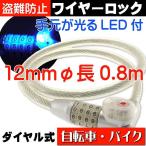 LEDライト付自転車盗難防止ワイヤーロック 自転車の車輪などに取付ける盗難防止用ワイヤーロックです。 数字4桁のダイヤル式で、解除の数字は変更することができます。 ダイヤルの横にLEDライトが付いており、暗闇の中でもLEDの灯りで数字を合わせやすいです。 自転車やバイクなどに最適です。 ■仕様 サイズ:12mmφ×0.8m 使用電池:ボタン電池×2個(別売) ■セット内容 ワイヤーロック×1個 注) ・本商品は輸入品の為、ごくまれに擦り傷や汚れなどがある場合が御座います。 予めご了承ください。 ・初期不良対応(返品・交換)は商品が加工などされておらず、商品到着後7日以内となりますので商品届き次第、本使用の前に動作確認して下さい。 ・商品取り付け時に発生した工賃や、部品破損などの責任は負いかねますのでご了承下さい。