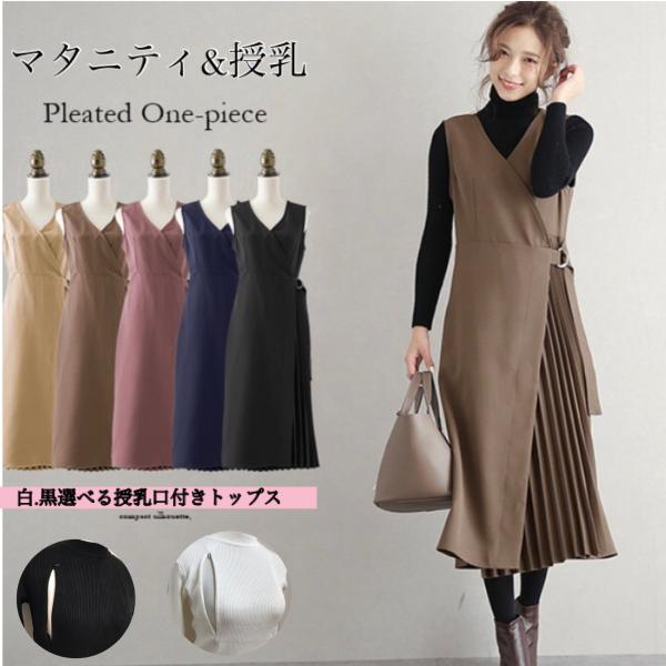 マタニティ 授乳 2点セット 授乳口付き ワンピース ワンピ 冬 秋 授乳タニティ服 産前 産後 長袖 通勤 OL お宮参り ママ 妊婦服 大きいサイズ ゆったり