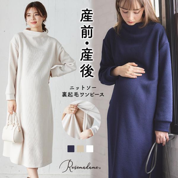 ニット裏起毛ワンピース 授乳口付きワンピース マタニティワンピース 裏起毛 あったか 産前産後
