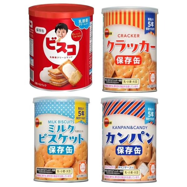 非常食 保存食セット ビスコ 保存缶 ブルボン クラッカー ミルクビスケット カンパン 4缶セット 長期保存 5年 災害 備蓄