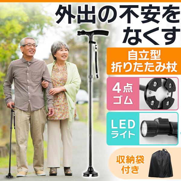 杖 折りたたみ 敬老の日 プレゼント LED 介護用品 介護 ステッキ 自立式 4点杖 女性 男性 トレッキングポール かっこいい