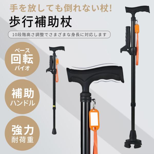 杖 自立式 介護 4点杖 ステッキ 10段階調整 滑り止め 補助ハンドル付き 伸縮式 軽量 コンパクト 歩行支援 歩行補助 高齢者 プレゼント