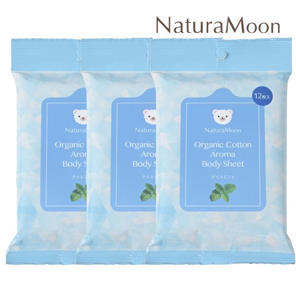 (3個セット)ナチュラムーン オーガニックコットン アロマ ボディシート アイスミント 12枚入(NaturaMoon 4935137806033)