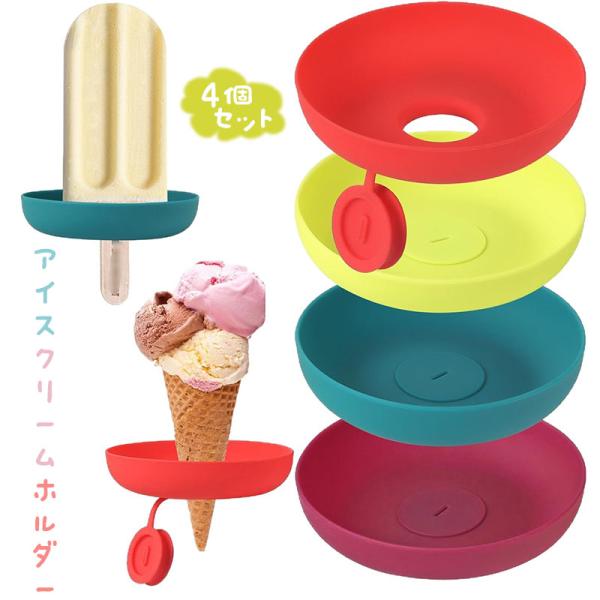 【4個セット】子供用アイスキャンディーホルダー 再利用可能 垂れない シリコン製アイスクリームホルダー お子様の誕生日や夏のパーティーに最適