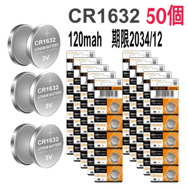 ボタン電池 CR1632 (3V 120mah)【50個セット】 消費期限2034/12 リチウムコイン電池 DL1632 容量偽装なし